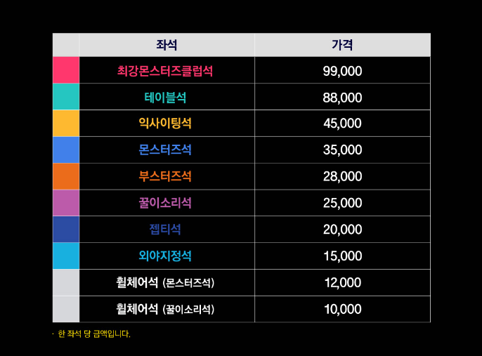 경로 장애인 국가유공자,미성년자(36개월~고등학생) 할인은 야외석에만 적용 (금액1만원)
