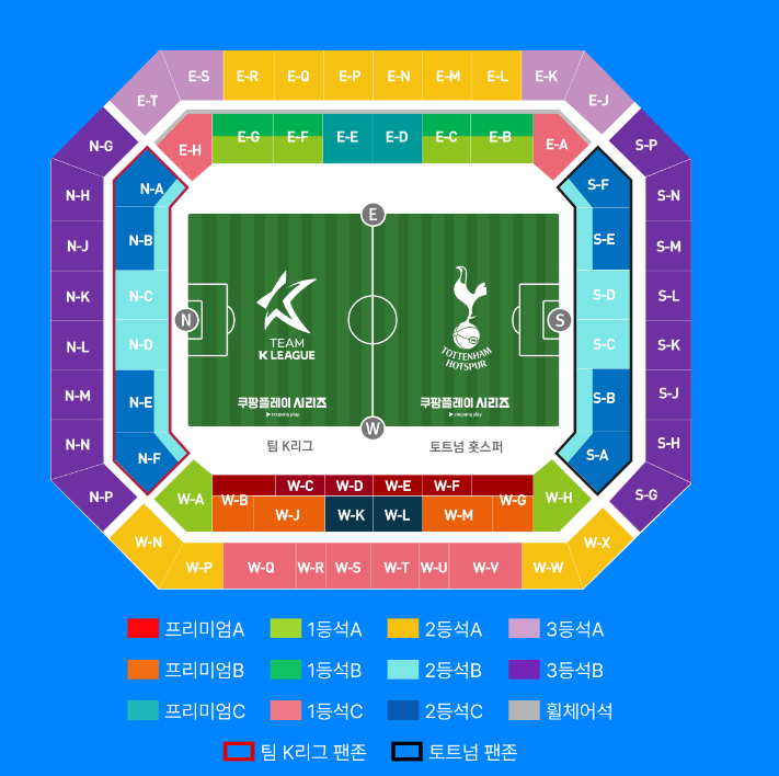 ✅ 팀 K리그 vs 토트넘 홋스퍼 본 경기의 프리미엄 A~C 좌석 티켓 소유자에게 관람 혜택이 주어지며, 좌석은 본 경기의 좌석과 동일합니다.