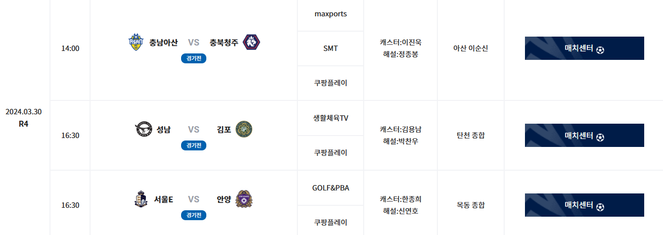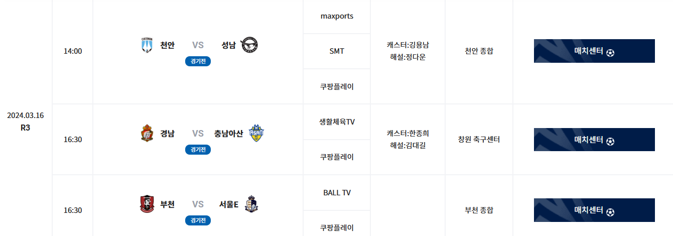 K리그1 3월 경기 일정과 장소등을 확인해 보실수 있으며, 티켓예매가 오픈된곳은 예매진행을 바로 해보실수 있습니다.모든 경기의 중계를 보실수 있는 곳은 쿠팡플레이에서 시청하실수 있습니다.